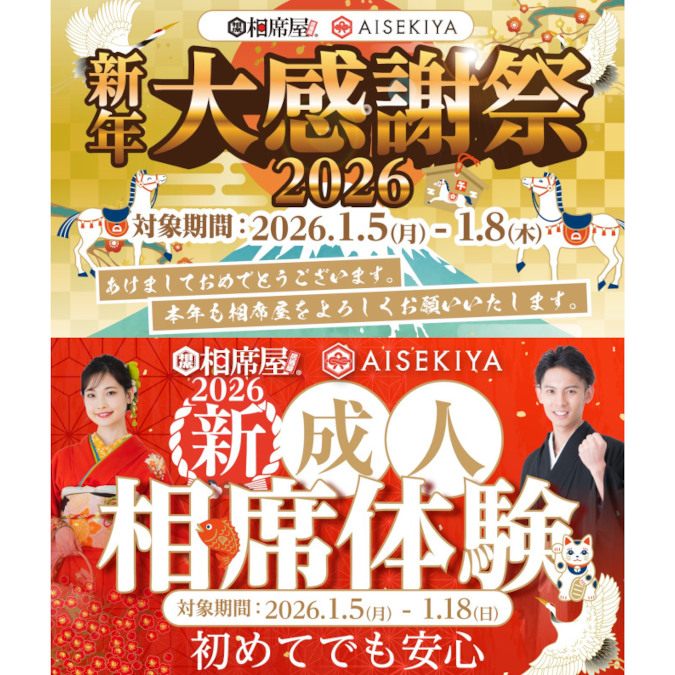 「新年大感謝祭」 と 「新成人 相席体験」 を日頃の感謝を込め、同時開催いたします!!